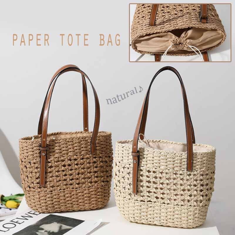レディース トート ショルダー かごバッグ 編み込み風 かわいい 小さめ 軽い ペーパー